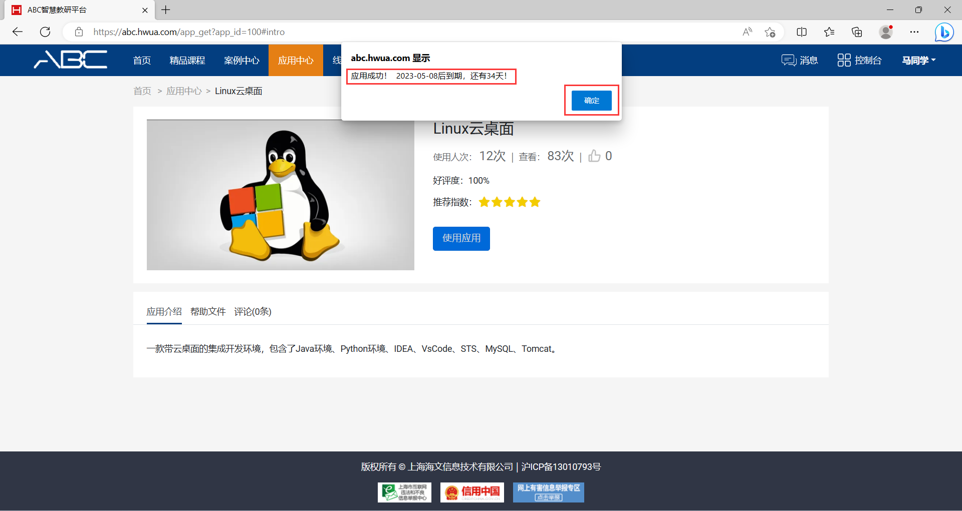 然后点击“确认”按钮,就可以部署一个新的Linux实验环境了。